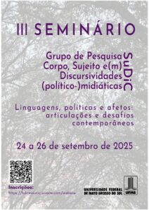 Seminário do Grupo de Pesquisa Corpo, Sujeito e(m) discursividades (político)midiáticas – (SUDIC)CNPq-UFMS: Linguagens, políticas e afetos: articulações e desafios contemporâneos